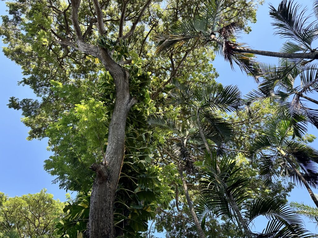 Entwined in the dance of tropical trees.