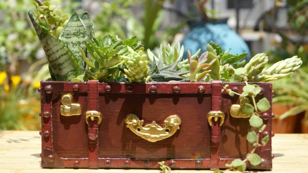 Vintage suitcases can be turned into charming, retro planters. Line the bottom with plastic, add soil, and choose plants that love a bit of shade. They’re ideal for creating a nostalgic corner in your living room or on your porch.
